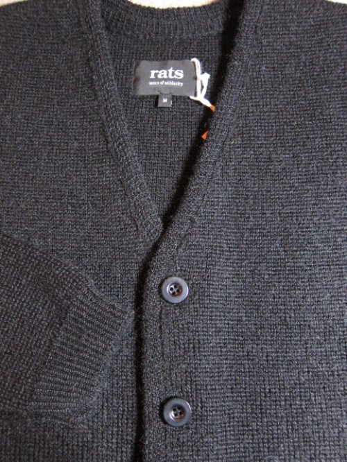 RATS/MOHAIR CARDIGAN BLACK ラッツのモヘアカーディガンです。 両裾部にポケットが付きます。 起毛の少ない厚手のモヘア地を使用のしている為 保温性に優れています。 MOHAIR55%、MERINO WOOL15%、NYLON30% M 着丈63cm身幅52cm肩幅40.5cm袖丈61cm RATS/MOHAIR CARDIGAN BLACK 販売価格: 38,280円(税込) 返品特約に関する重要事項 お問い合わせ 他の写真 バックです。 フロントアップです。 フロントアップです。 Facebookコメント 関連商品 RATS/CORSAC LEATHER JKT CAMEL 132,000円(税込) RATS/RAT B-15A FLIGHT JK BLACK 63,800円(税込) RATS/SINGLE P-COAT BLACK 54,780円(税込) RATS/SHAWL COLLAR CARDIGAN CHARCOAL 39,600円(税込) RATS/INLAY HENLEY NECK ECRU 14,080円(税込) RATS/WESTERN BLOUSON GRAY 30,800円(税込)